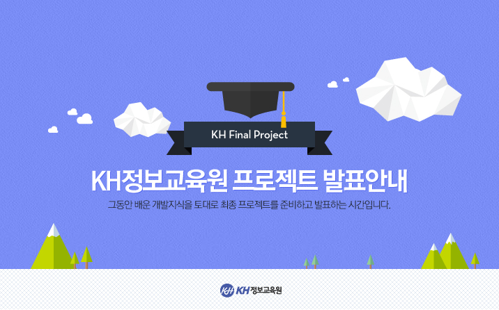 프로젝트 발표회에는 KH정보교육원에서 공부하고 있는 학생이면 누구나 참관할 수 있으니 많은 관심 바랍니다.