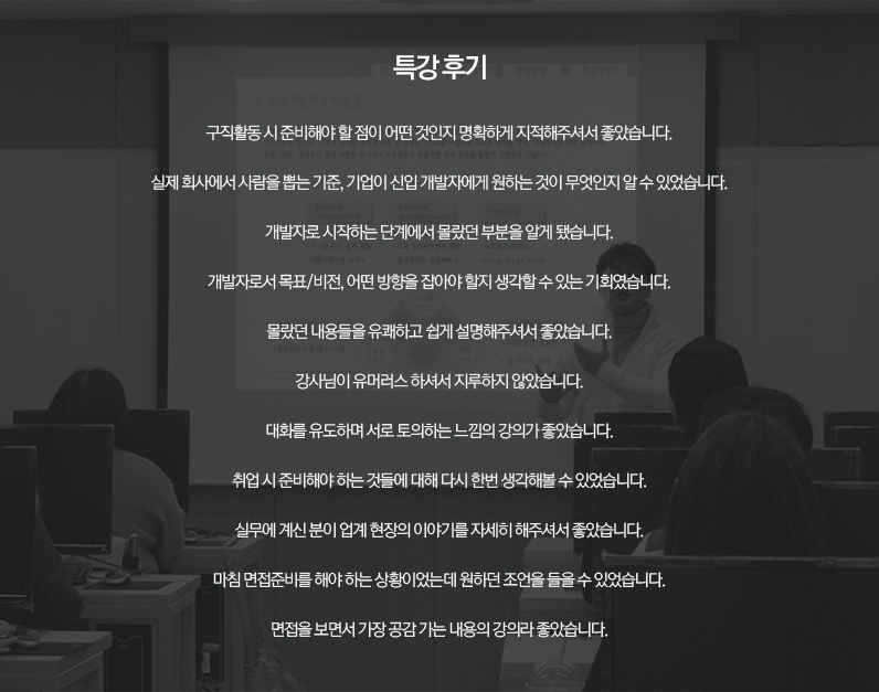 KH임직원은 수강생 한 분 한 분의 성공적인 취업을 위해 최선을 다하겠습니다.